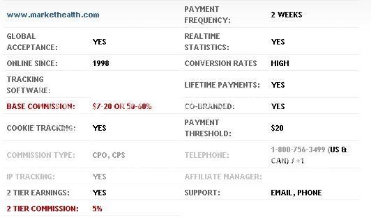 Many networks and affiliate programs require a large number of daily generated leads in order to permit increased commission rates. MarketHealth Affiliate Network offers a 50 % per sale initial commission to new affiliates with a potential raise to 60 % per sale.